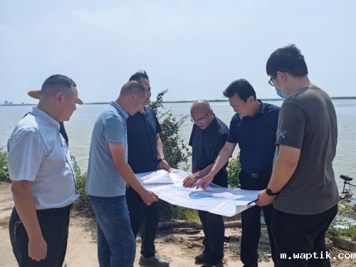 图为审计人员现场踏勘洪泽湖退圩还湖工程实施情况