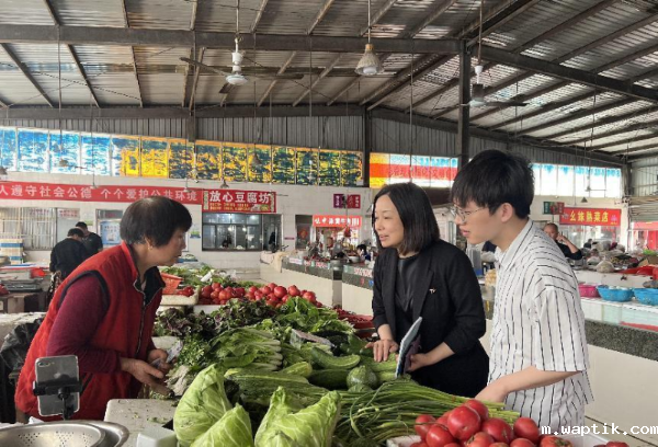 近日,常州市武进区审计局在某乡镇领导干部经济责任审计中,重点关注乡镇农贸市场日常运营管理情况。审计人员实地查看农贸市场基础设施建设、食品安全和环境卫生等情况,并对摊位租赁收费、菜品供应、菜价波动及食品安全检测落实等问题进行检查,以审计监督守护民生福祉,让百姓菜篮拎出幸福感。图为审计人员现场查看农贸市场运营情况。(王强)