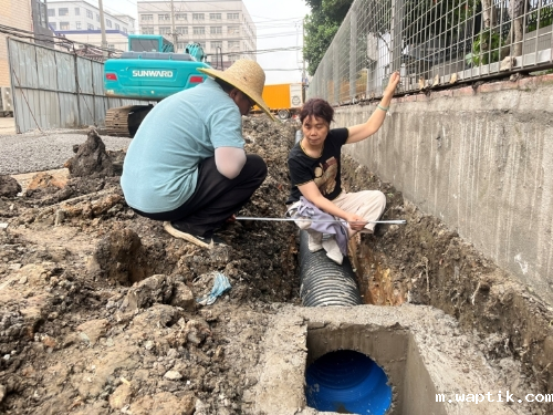 近日,丹阳市审计局在乡镇道路改造工程审计中,重点关注雨污分流管网建设质量情况。审计人员通过查阅设计图纸资料、比对招标与中标量价等数据,现场核查雨污水井、雨污水管的数量和管径是否符合设计要求、雨污水管质量是否符合相关检测要求、雨污水管道的连接是否紧密且无渗漏、雨污管道的施工工艺是否符合相关规范要求等,严把隐蔽工程质量关,避免雨水倒灌、雨污混流,助力保障汛期排水管道畅通,改善群众人居环境,助力提升防汛排涝能力。图为审计人员核查雨水管道施工情况。(周爱霞)